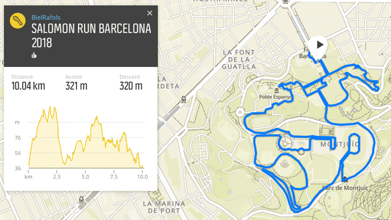 La Salomon Run es una prueba de 10km con personalidad propia, con un circuito lleno de sorpresas: escaleras, cambios de terreno y vistas a Barcelona. Los participantes arrancan junto a la Font Màgica de Montjuïc y afrontan un inicio exigente pero divertido con una buena ración de escalones. “Yo intento no salir muy rápido ya que al empezar con dos tramos de escaleras bastante largos si sales a tope lo puedes pagar muy caro. Una vez superados, intento mantener un ritmo constante y recuperar el aliento cuando hay bajadas”, cuenta Bonet.